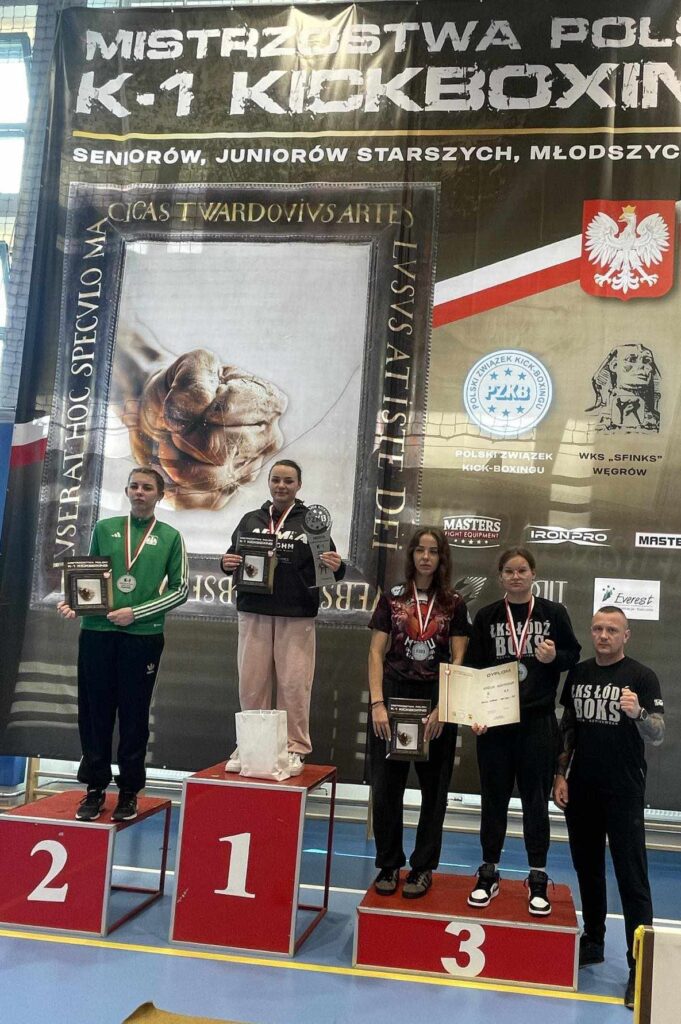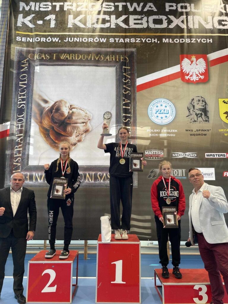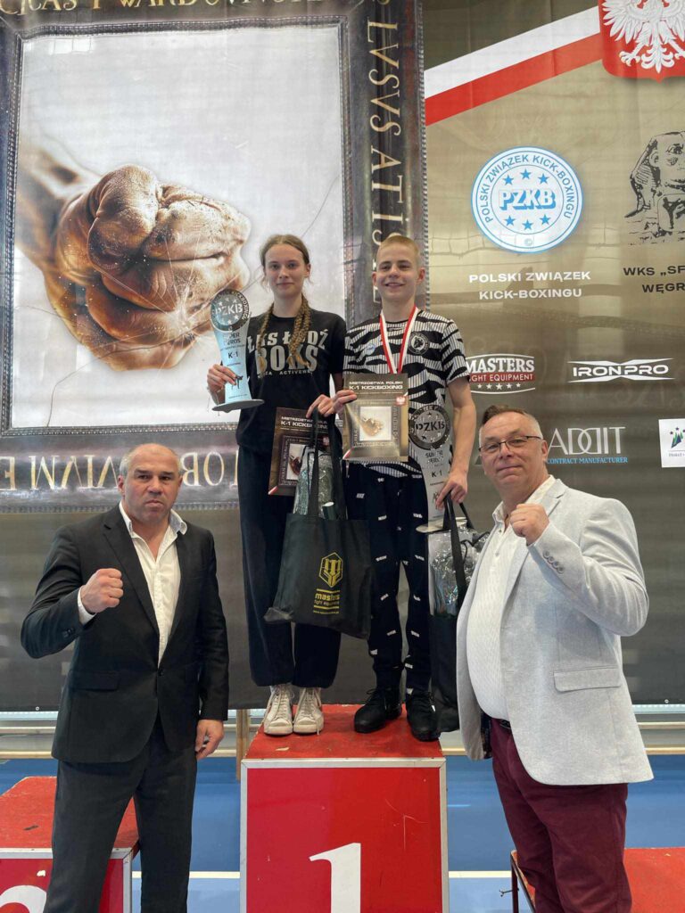 Mistrzostwa Polski K-1 Rules Juniorów i Seniorów w Węgrowie, to kolejny start, w którym świetnie spisali się reprezentanci sekcji kickboxingu ŁKS ŁÓDŹ BOKS – Amelia Kostrzewa (juniorka starsza -70kg), Weronika Śmigielska (juniorka młodsza -60kg) i Olivier Hojeński (junior młodszy -71kg). Nasi Wojownicy udowodnili, że ŁKS to marka, z którą zawsze trzeba się liczyć. Weronika i Olivier zdobyli złote medale, zaś Amelia wywalczyła brąz. Do zawodów zgłosiło się blisko 400 zawodników i zawodniczek ze 102 klubów z całej Polski, a rywalizacja odbywała się na trzech ringach.